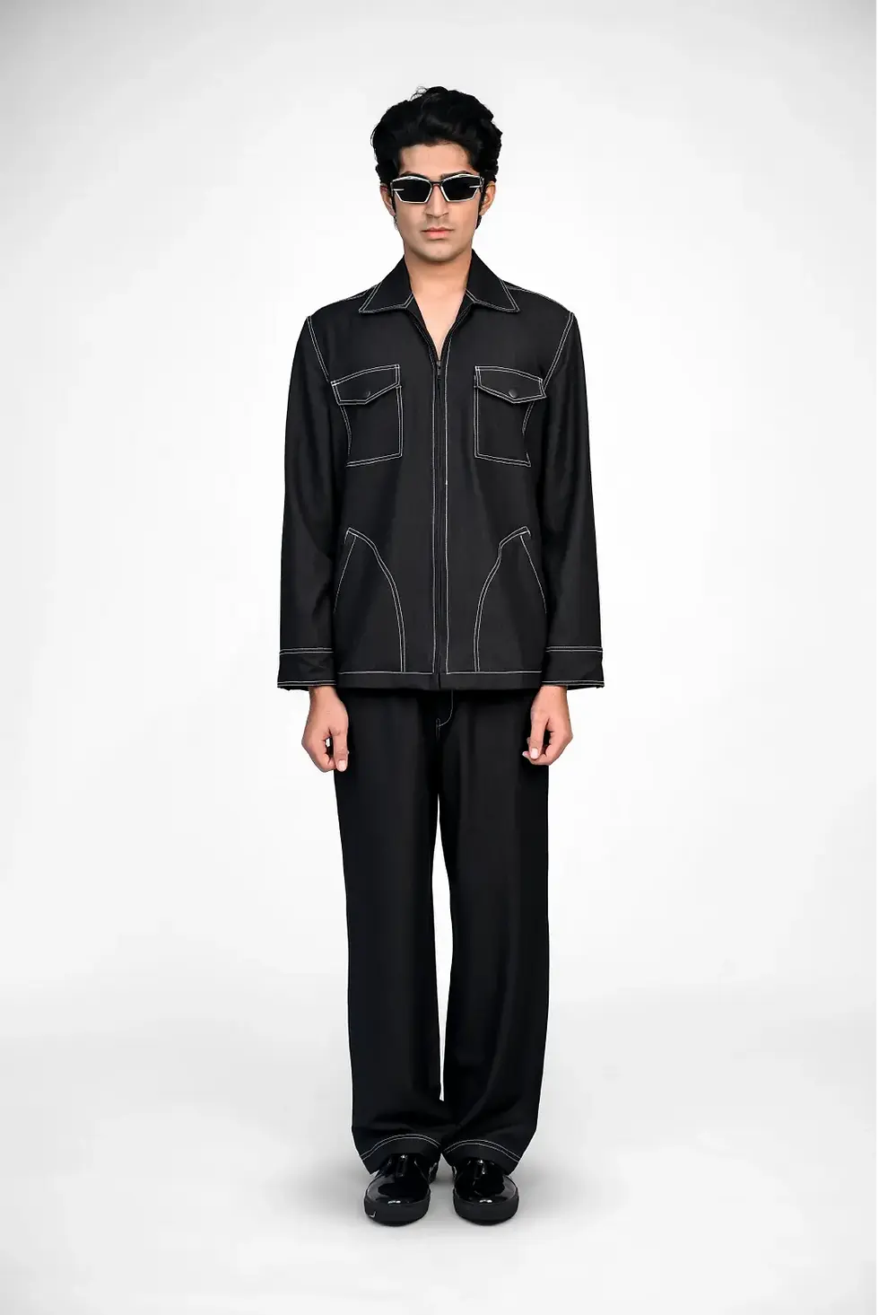 The Black Vortex plays with contrast…..matte and shine, structure and slouch.