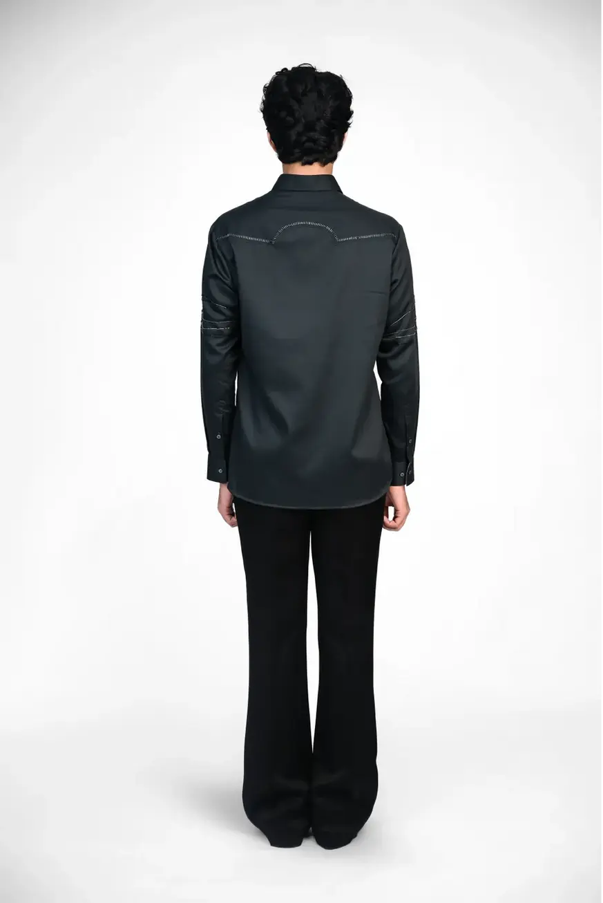 Midnight Blue Shirt With Anatomical Heart Embroidery.